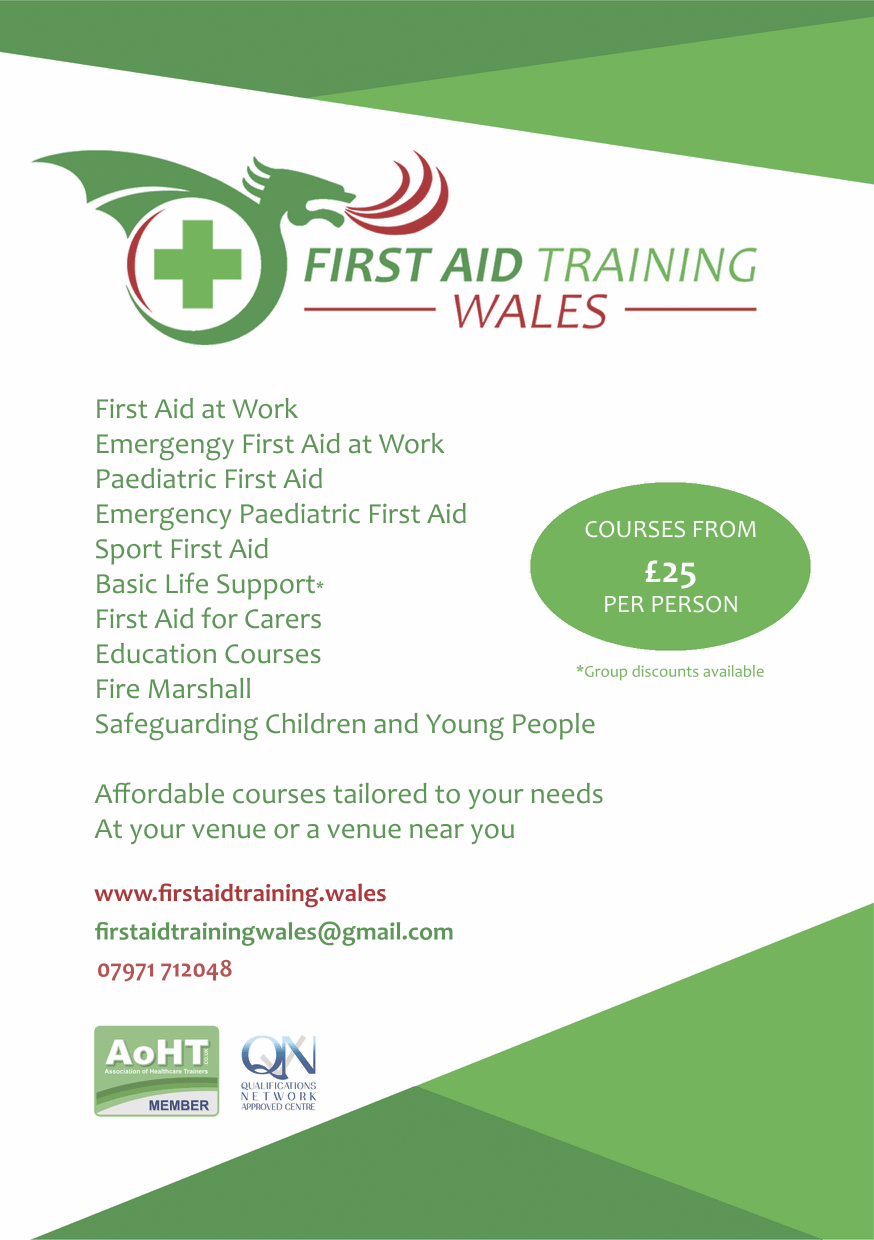 +44 797 1712048 or email:firstaidtrainingwales@gmail.com